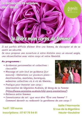 - Pratique pour honorer son corps : intervention de Ségoleine Audrain, Qi Gong de la Femme (https://www.segoleine-audrain.fr/qi-gong-prestations/)